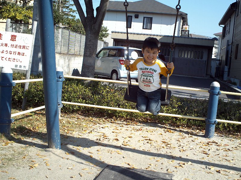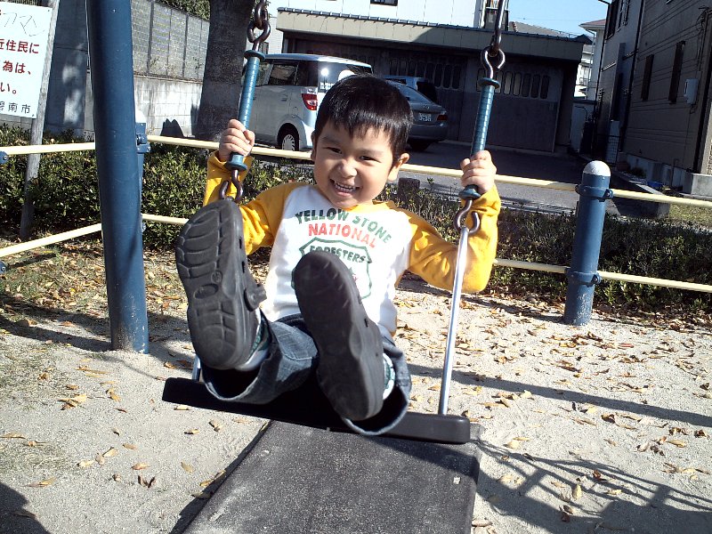 昊輝はブランコが1人でできたと言うことで、近所の池下公園にそれを見せてもらいにいきました。自分で上手に助走をつけてケタケタ笑いながら楽しそうにブランコしていました。