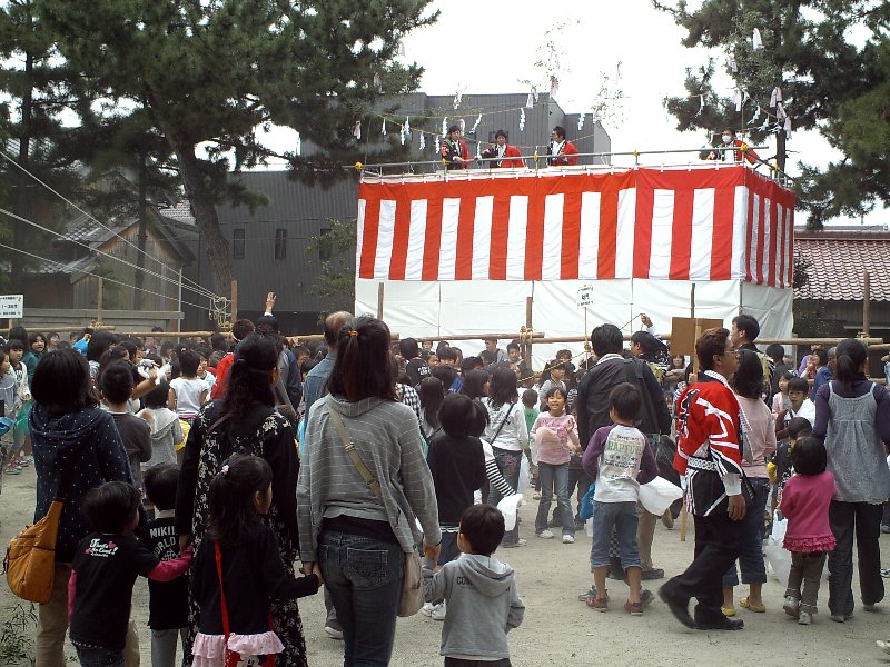 正午になると持ち投げがあるということで、スタンバッていましたが、幼児の部は並んでいればもらえるみたいな感じでした。が…並んでいたのにちょっと前に終了って感じでお菓子をもらえることができませんでした