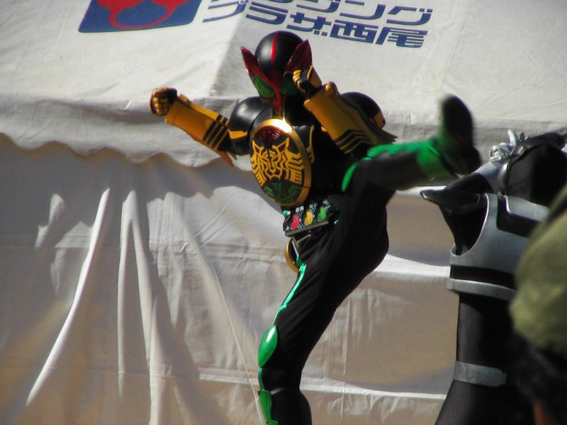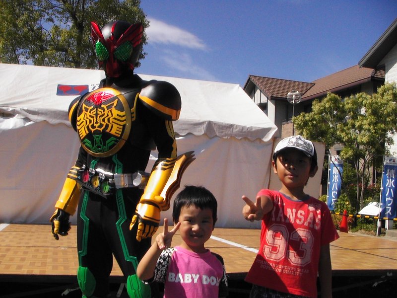 をして、10:30から西尾のハウジングセンターで「仮面ライダーショウ」があったので、それを見に行ってきました。晴輝は生意気にも「どーせ、人間が中に入ってるんでしょ