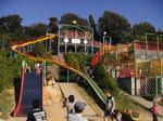もよかったので子供連れの家族でいっぱいでした。芝生の上にシートを敷いて、ご飯