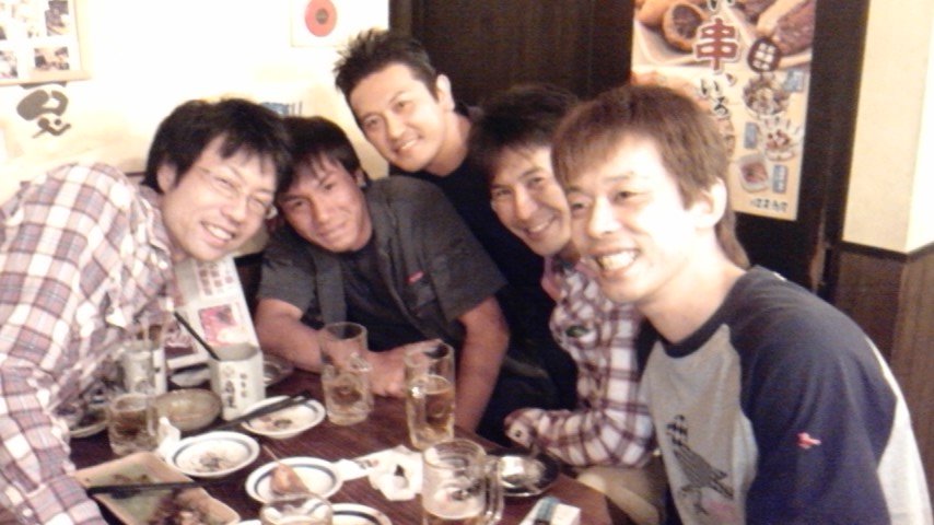 みんなが揃うのは何年ぶりかなぁ??左からやっさん(G)、あんちゃん(B)、自分(Vo)、チャゲ(Dr)、舘盛(G)