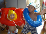 プールに浮き輪とビート板が置いてあり自由に使っててもいいよというシステムでした。