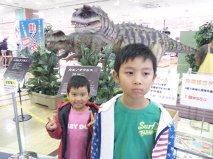 動く恐竜がいてこどもたちはちょっとビビりながらも近づいてみてました。