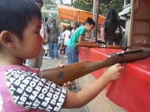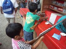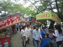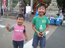 祭りはお店がたくさん出ていて子供たちは射的をやったり、綿菓子をかったり、ピカピカ光る剣をかったりして喜んでいました