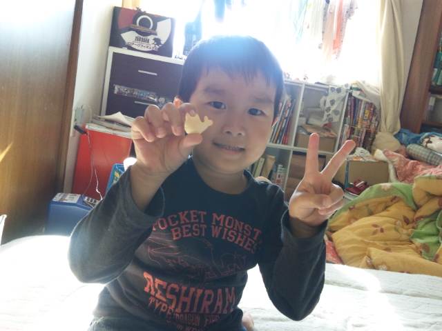 迷子になって怖い体験をした昊輝でしたが家に帰ってたべたおっとっとのかに「まねきねこ」の形をしたものが入っていて、やっぱりもってるなって感じでした