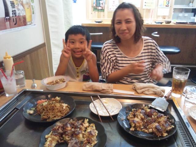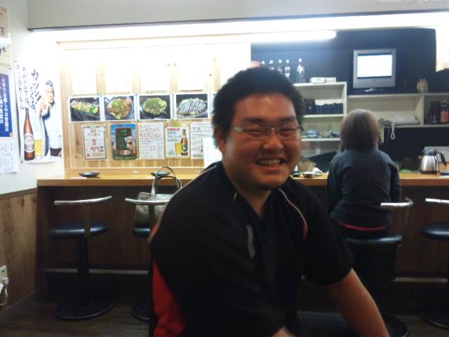 で乾杯しました。お好み焼きはもちろんですが、ホルモン焼き、トンペイ焼き、おでんとおいしい物を食べながら、プライベートな話に花が咲きました