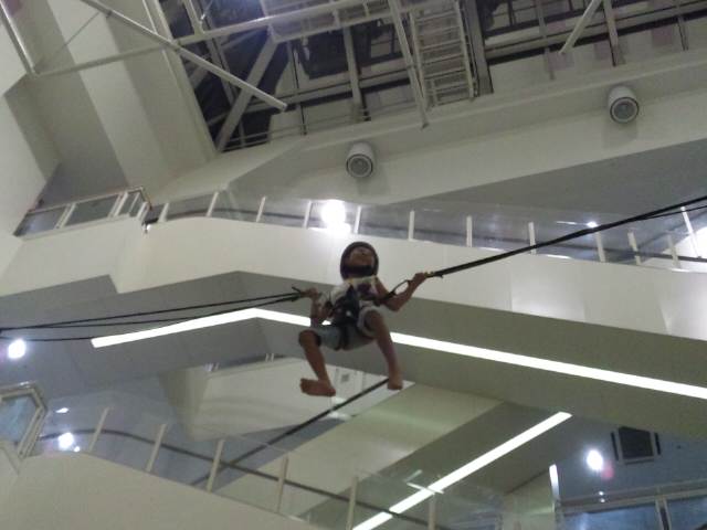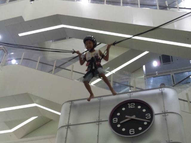 イオンのホールではいつもいろんなイベントをしていますが、今日は逆バンジーのようなことをやっていました。体重制限(55Kg)があったので僕はできませんでしたが晴輝が挑戦することになりました